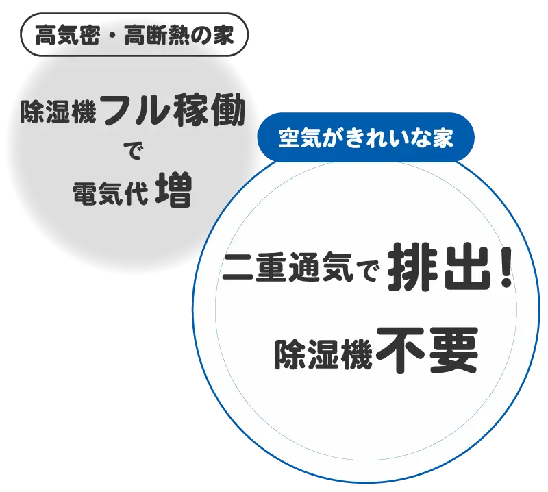 透湿壁+通気層のW構造で自動排出 壁が湿気と有害物質を